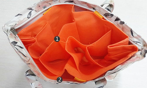 ![]() | ②:邊袋在外包與內膽中間,區域比較安全,可以放置一些比較貴重的物品,或者媽媽自己的用品。可以與寶寶用品區分開,保證衛生。 |