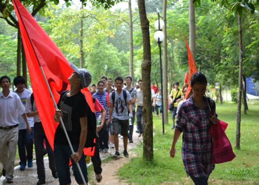9:30蓮花山下--帶上笑容我們踏上登山的路,一路上盡情呼吸著在都市  久違的芳草氣息,森榮的旗幟在蓮花山上飄揚(yáng),森榮人的笑聲在蓮花山上流動(dòng)。此刻我只想到了一句歌“我們的隊(duì)伍像太陽(yáng)”