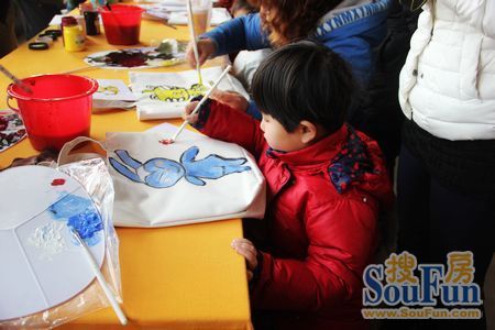 售樓處內(nèi),大家激情洋溢,男女老少齊齊上陣。大家挑選自己喜愛的帆布袋,他們提供的圖案,或自己獨創(chuàng)親自繪制各種各樣的環(huán)保袋。現(xiàn)場一位業(yè)主告訴記者,“這活動不僅培養(yǎng)了小朋友們的動手能力以及普及了綠色環(huán)保的公益理念,同時讓我們家長與孩子有了一起動手的機會,增進了感情,也讓我們了解到孩子的興趣取向。”