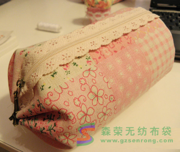其實(shí)這款化妝包非常簡(jiǎn)單,不懂針線的朋友也可以輕松做出來(lái),而且收納功能很強(qiáng),圓柱體的體積在立方體里是最大的,因此你會(huì)驚訝的發(fā)現(xiàn)好多化妝小物都能輕松收納進(jìn)去,當(dāng)然也可以用作筆袋,手機(jī)包等等。歸納起來(lái),整個(gè)制作過(guò)程可以分為三步:一,表布和里布縫合;二,收緊兩頭做出圓筒狀;三,加上裝飾和提手。