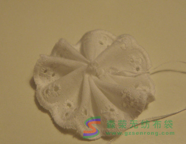 接下來(lái)我還加了一圈花邊,做成一朵小布花:
